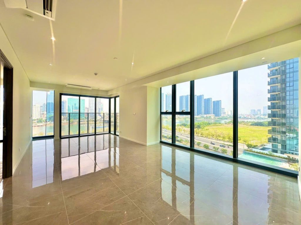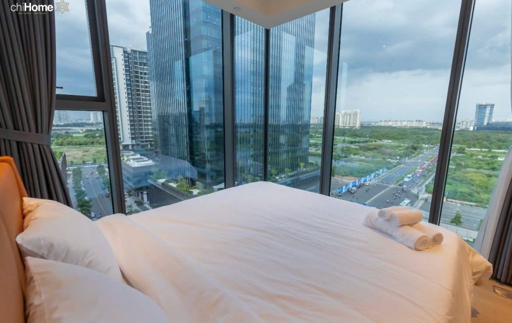 Thiết kế tại the metropole thủ thiêm tập trung vào công năng và không gian mở. Mỗi căn hộ đều có ban công và cửa kính lớn.