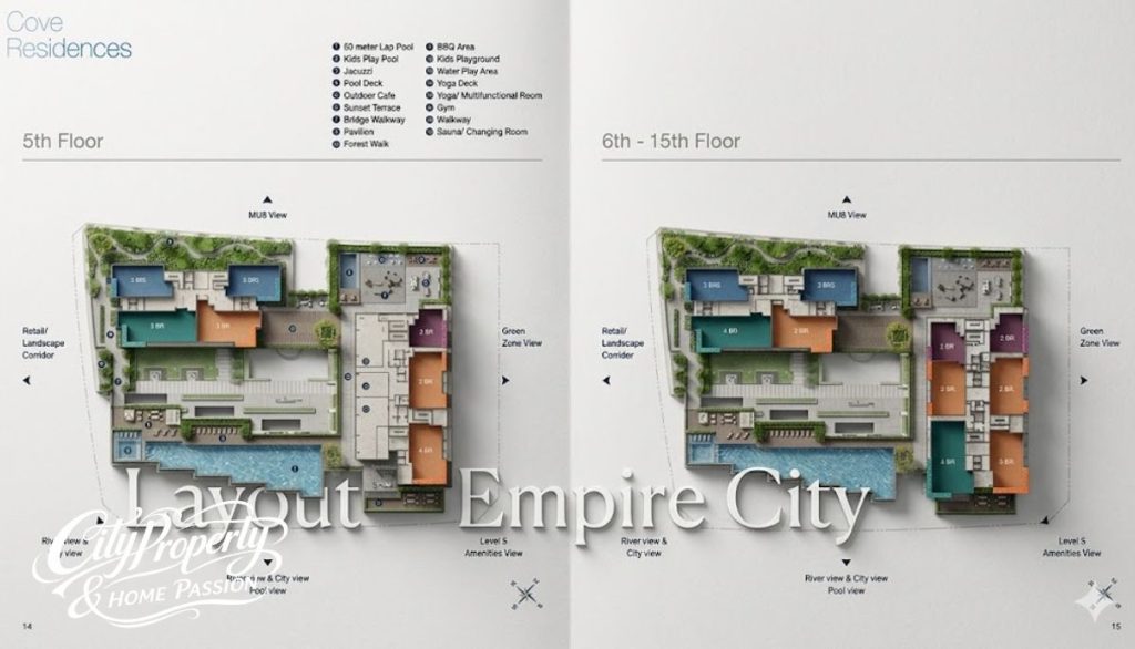 Cove Residences (MU11) là phân khu sát mép sông Sài Gòn nhất trong toàn bộ dự án. Mặt bằng căn hộ empire city tại đây được thiết kế theo tiêu chuẩn thượng lưu với số lượng căn hộ rất giới hạn. Chỉ có khoảng 136 căn hộ nằm trong hai tòa tháp cao 16 tầng, đảm bảo sự riêng tư tối đa cho chủ nhân. Layout căn hộ cao cấp này tập trung vào các diện tích lớn, không có loại hình 1 phòng ngủ.